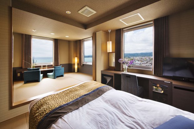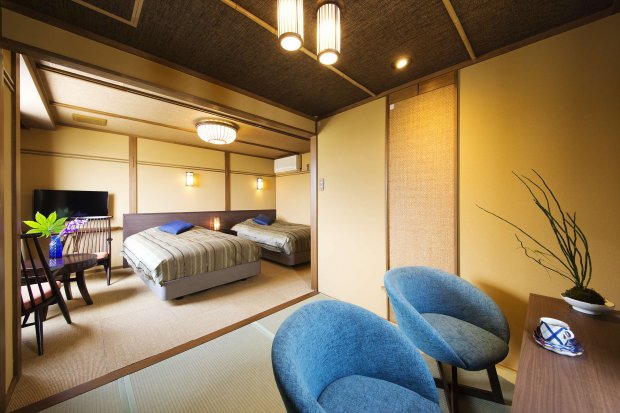 海側で、2間続きのごゆっくりお寛ぎいただけるお部屋です。