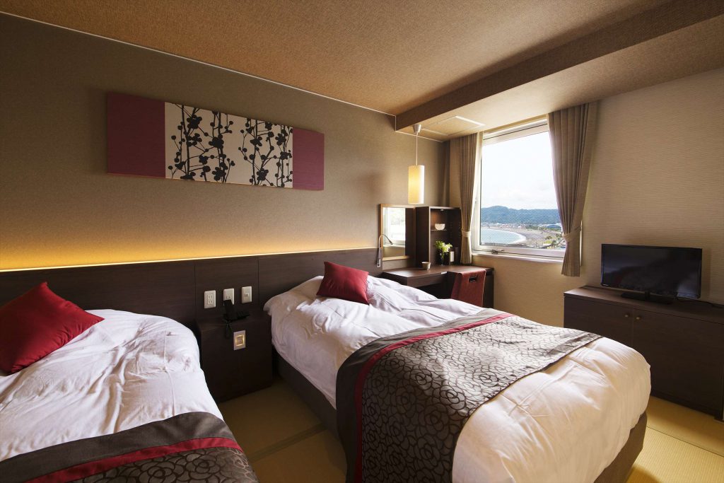海側で、窓からは海が眺められる、コンパクトなお部屋です。