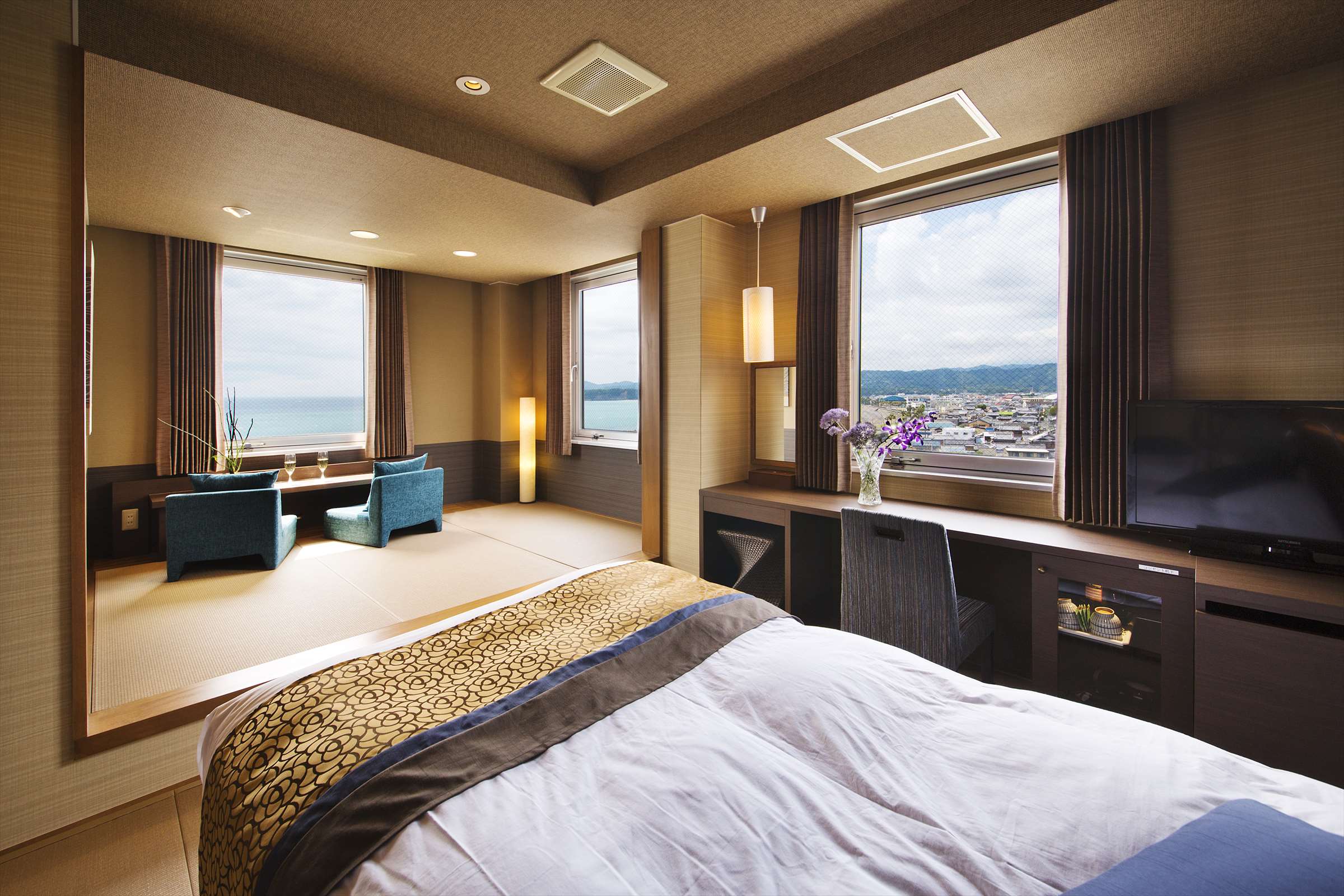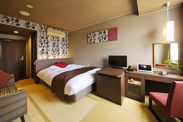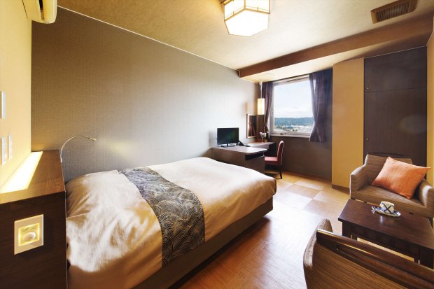 お部屋はコンパクトでシンプルですが、和モダンルームの中では最もリーズナブルな価格帯で人気のお部屋です。一人旅やビジネスで優雅に過ごしたい方、仲良しカップルの方におすすめの客室です。