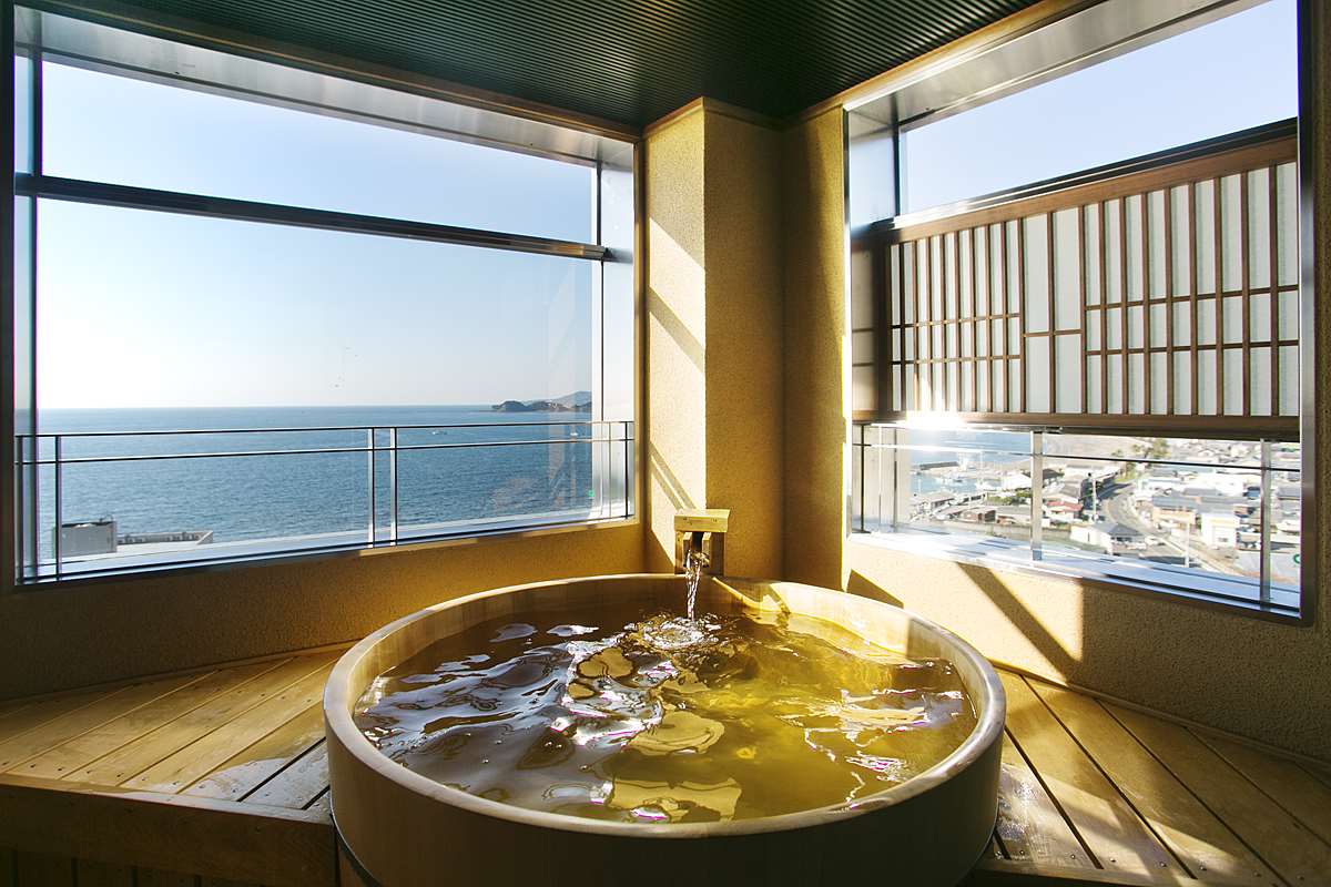 8階のお風呂は男女入れ替え制になっており、海側のお風呂には展望桶風呂がついております。